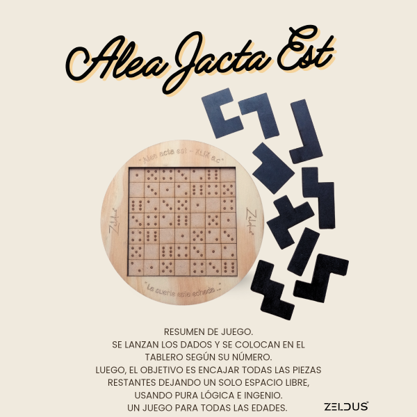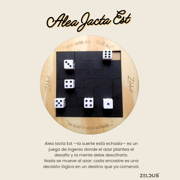 Alea Iacta Est —la suerte está echada— es un juego de ingenio donde el azar plantea el desafío y la mente debe descifrarlo.